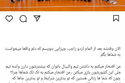 هیچ اختلاف و دودستگی در تیم ملی وجود ندارد. ما همه اعضای یک خانواده هستیم و کسانی مطالب تخیلی نوشتند که برای نوشتن استوری بین ما دودستگی شده درحالیکه اصلا کسی نمیدانست من میخواهم استوری بگذارم.