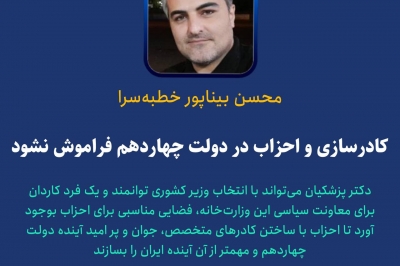 دکتر پزشکیان میتواند با ایجاد یک فضای مناسب برای احزاب و نگاهی ویژه به جوانان و کادرسازی؛ آینده دولت چهاردهم و مهمتر از آن ؛ آینده ایران را بسازد