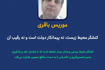 کنشگر محیط زیست نه پیمانکار دولت است و نه رقیب آن؛ او وجدان بیدار جامعه است که با هشدار، نقد و یادآوری، مسیر تصمیمگیری و حکمرانی را به سمت منافع عمومی هدایت میکند.