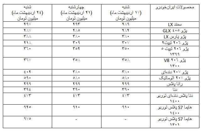 در محصولات ایرانخودرو نیز افزایش دو تا ۲۲ میلیون تومانی قیمت محصولات نسبت به آخرین روز از هفته گذشته (چهارشنبه) مشهود است.